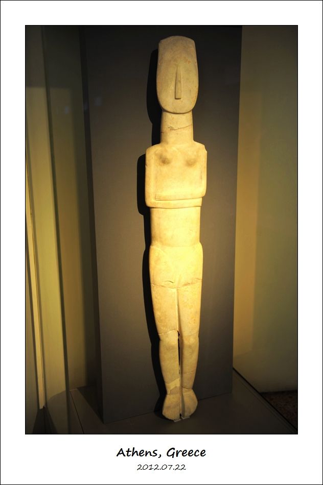 这件是公元前2800年到公元前2300年的石雕,叫做“基克拉泽斯文明早期抱手女像”(Female Statue of The Early Cycladic Folded-arm Type)。