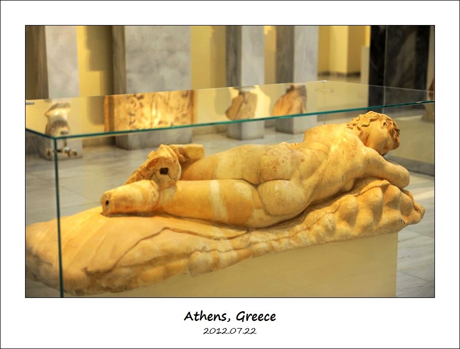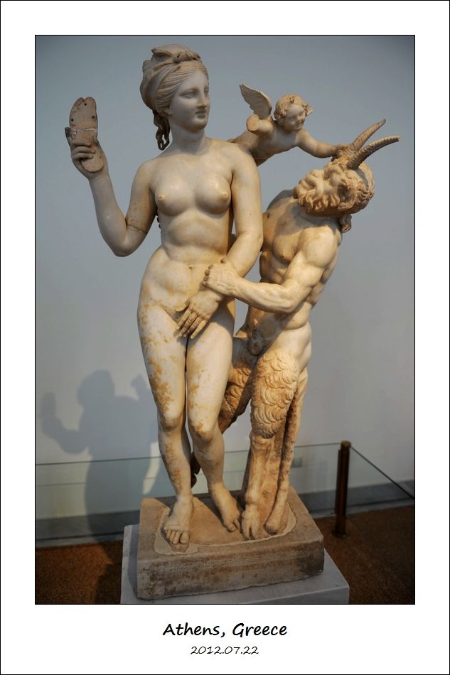 这件希腊化时期(Hellenistic Period)公元前100年的大理石石雕来自提洛岛(Delos),叫做“阿佛洛狄忒,潘和爱的大理石组”(Marble Group of Aphrodite,Pan and Eros)。