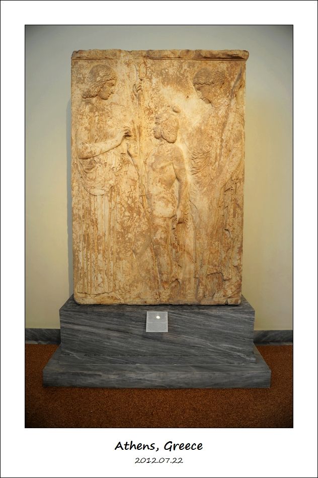 这个公元前420年到公元前410年的墓碑,叫做“Mnesagora 和 Nikochares 的大理石墓碑”(Marble Grave stele of Mnesagora and Nikochares)。