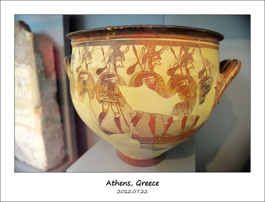 这件是公元前12世纪迈锡尼时期的文物,叫做“迈锡尼武士罐”(Mycenaean Warrior Vase)。