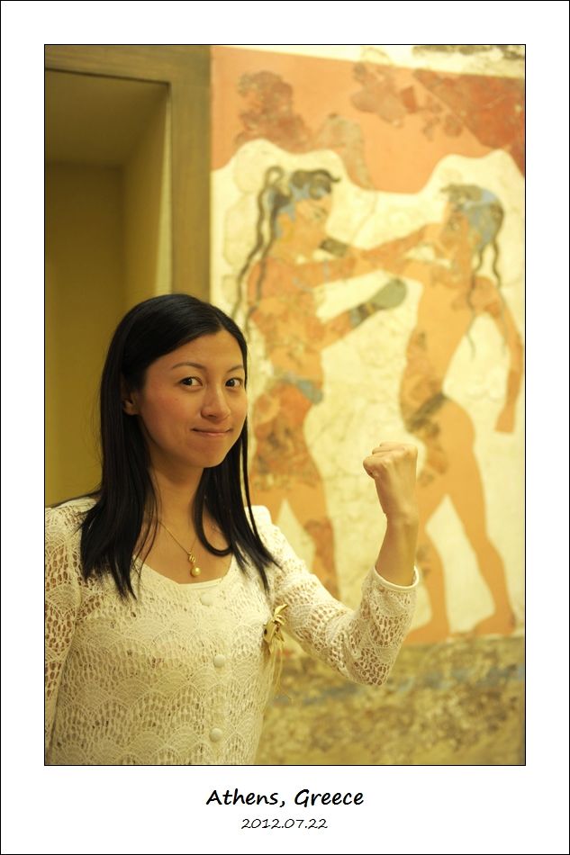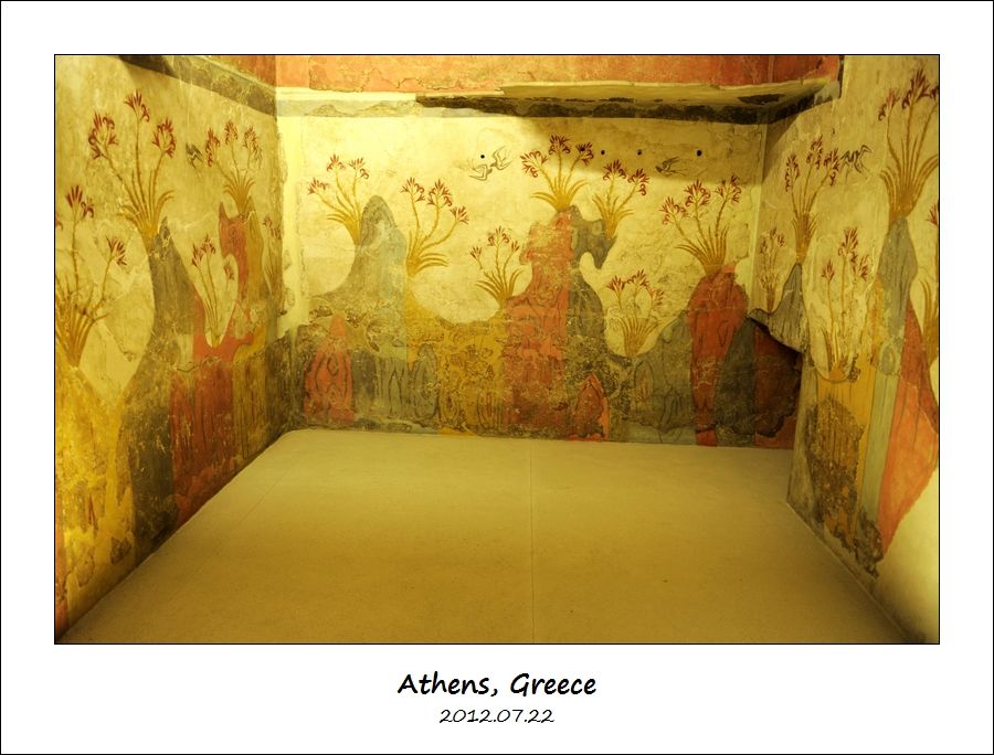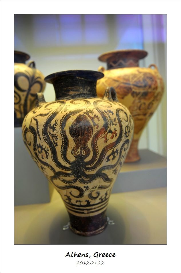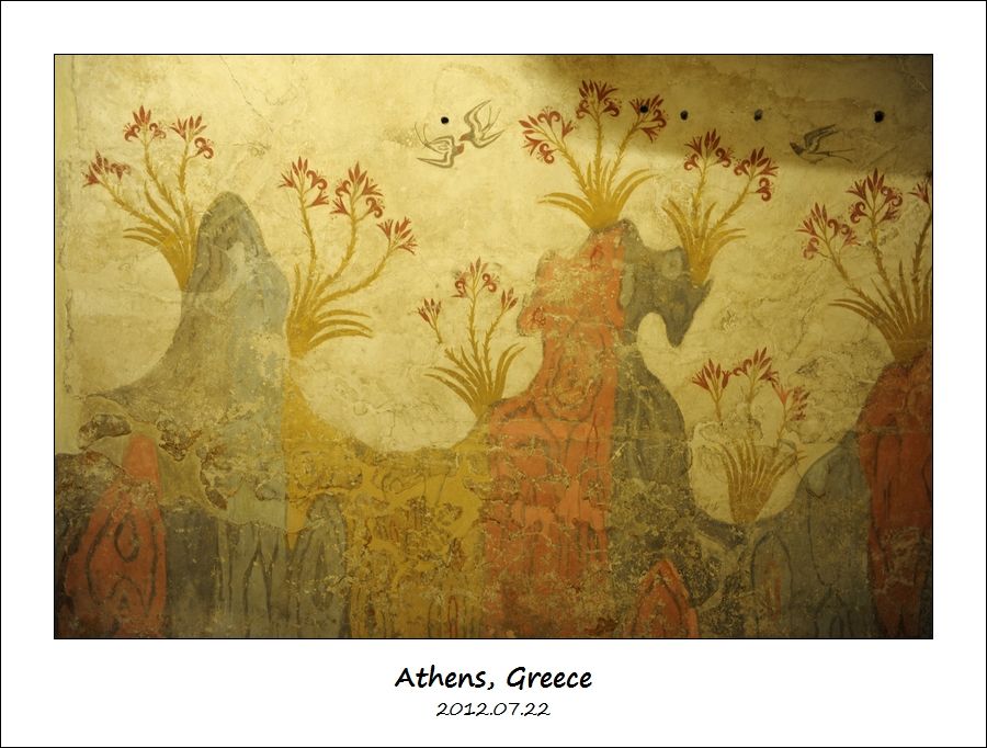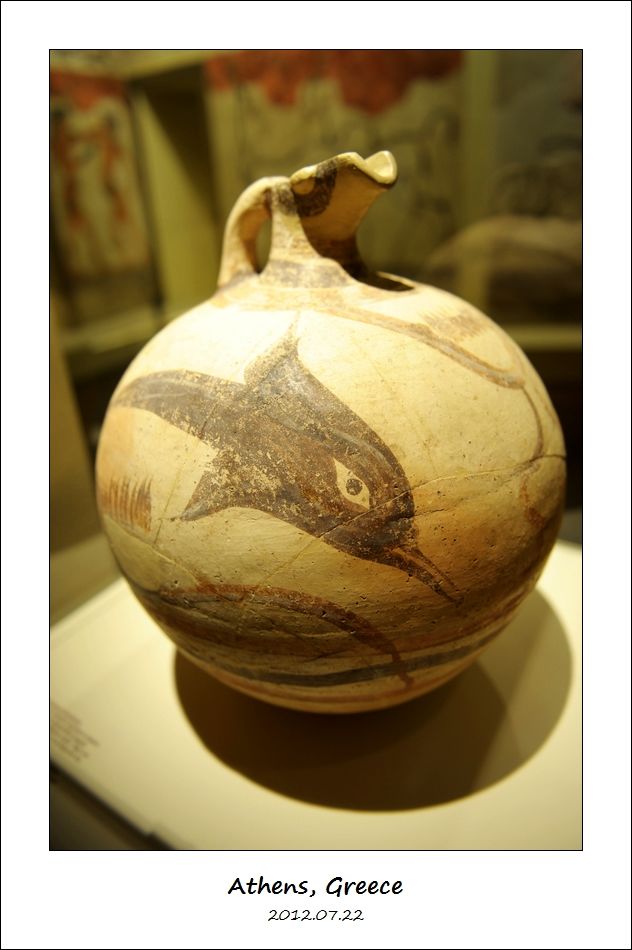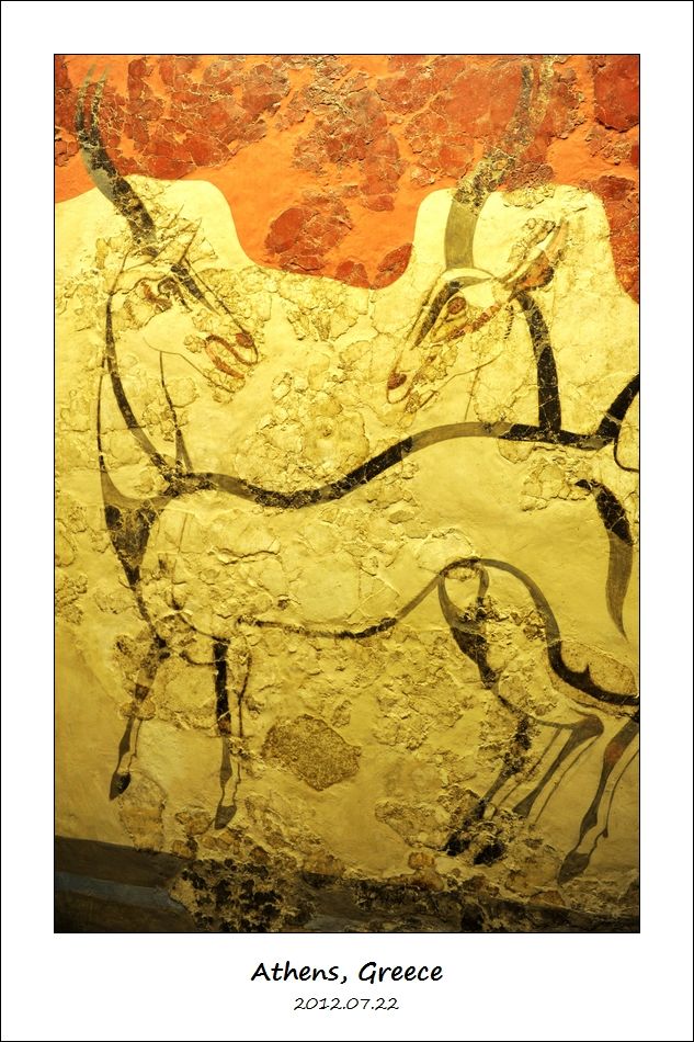 然后上二楼,我们去参观圣托里尼岛(Santorini 或 Thera)古代阿克罗蒂里遗址(Ancient Akrotiri)出土的文物。