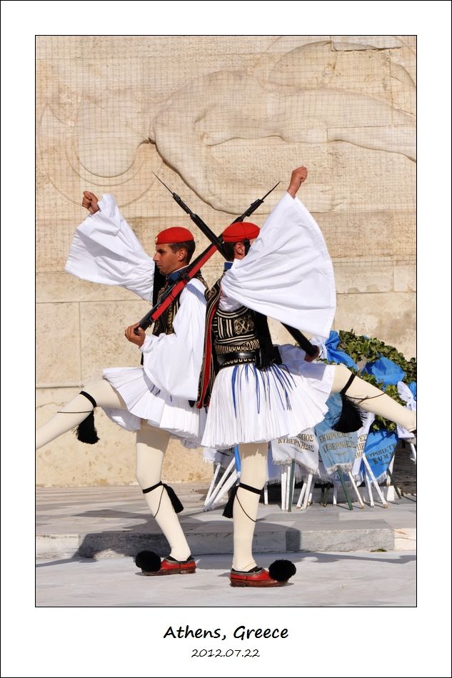 去旅店旁边宪法广场(Syntagma Square)无名烈士墓(Tomb of the Unknown Soldier)前观看每周一次的卫兵换岗大仪式(Changing of the Guard)。