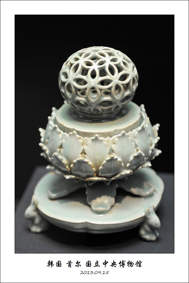 青瓷展馆中的青瓷透刻七宝纹香炉。