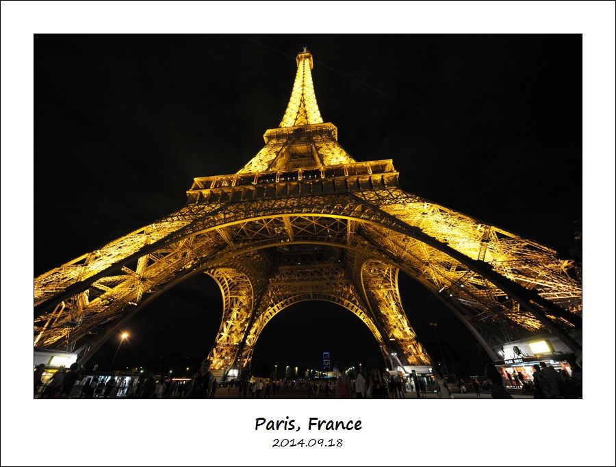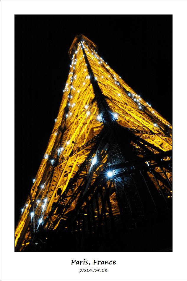 埃菲尔铁塔下面照一张铁塔夜景。
