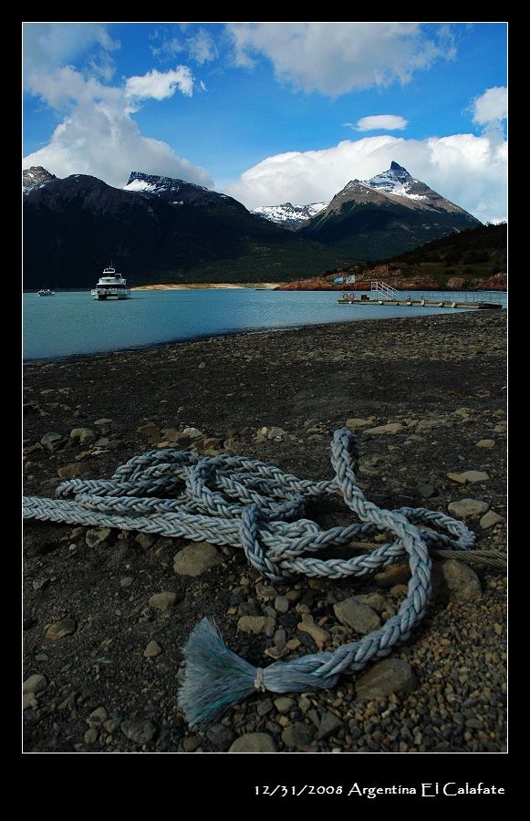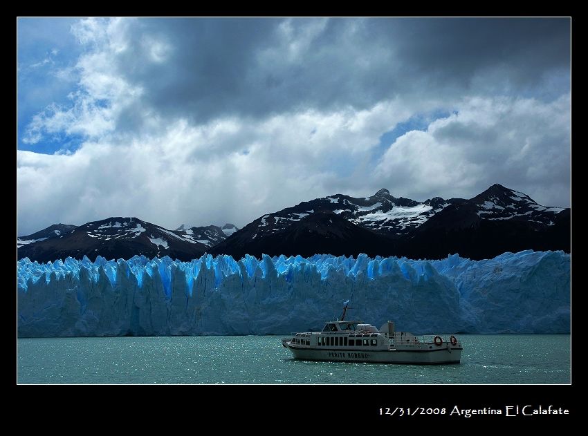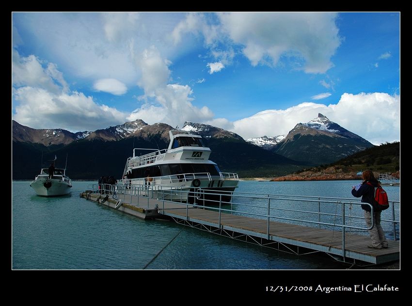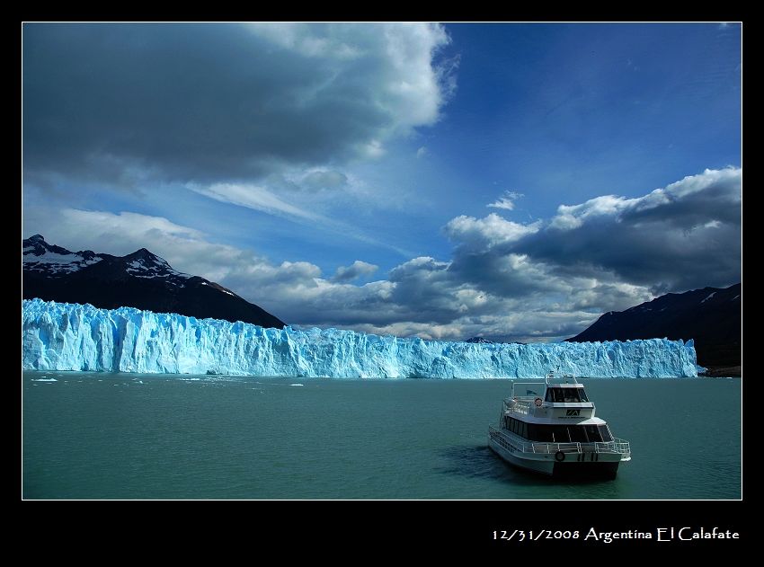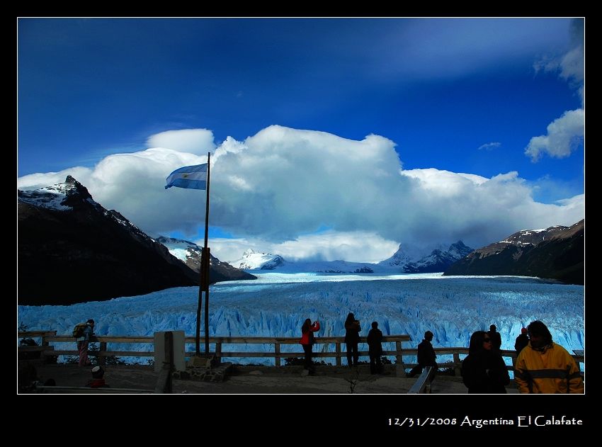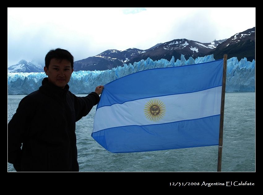 我在船上和莫雷诺冰川合张影吧,还有阿根廷的国旗。