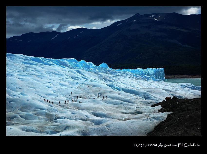 注意冰川偏左的一个洞,和前面有人的一个观景台,很有讲究的两个东东,下面会说。