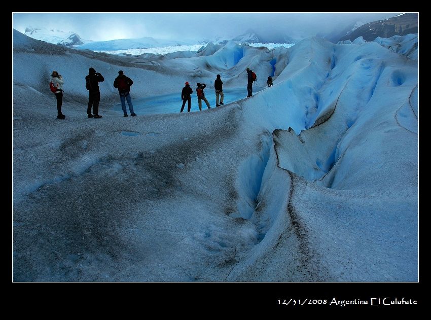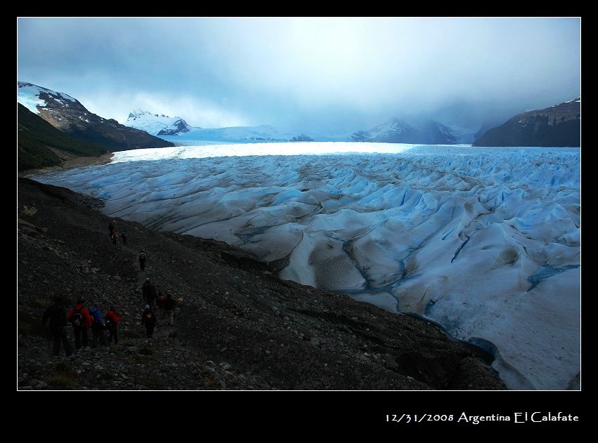 天气又阴了,飘些雨丝,冰川上看冰川。