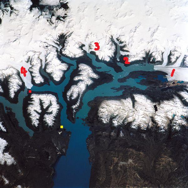 继续写之前,先再贴一下这个地区的卫星照片,注意4就是莫雷诺冰川。