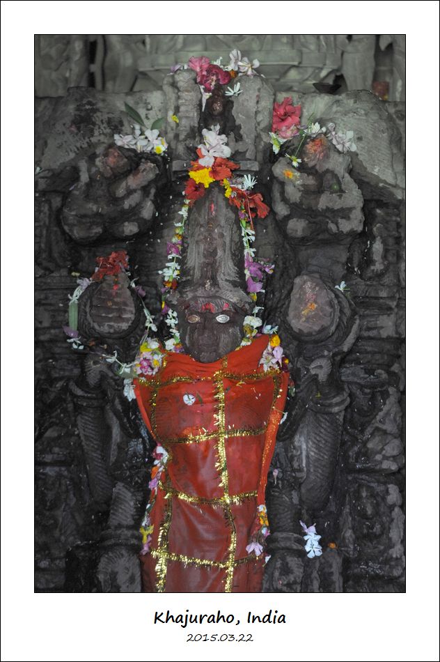 照一下神庙中间这尊巨大的毗湿奴的野猪化身。
